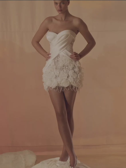 Every element is carefully chosen — textures blend together, and gloss contrasts with glow. This creates a shape that feels both sculpted and light. Anita is for the bride who loves art and luxury, where modern skill meets timeless beauty.