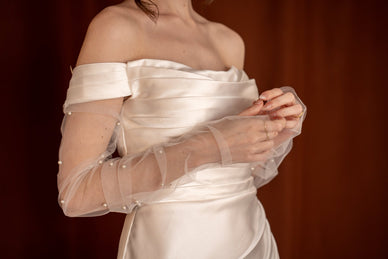 With their fingerless design, Elodie offers ease of movement while maintaining a refined, modern look. Perfect for brides seeking timeless elegance with a contemporary twist, these gloves bring a subtle yet luxurious finish to your wedding day attire.