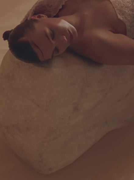 Every fold moves with quiet grace — a balance of structure and air. She’s for the bride who understands contrast: the allure of texture against polish, tradition reimagined through a contemporary lens.