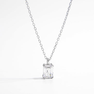 This exquisite necklace showcases a stunning emerald-cut zircon stone, securely held in a double claw setting that highlights its brilliant sparkle. Crafted from high-quality 925 sterling silver, it offers both durability and a timeless elegance.