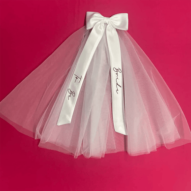 Crowned with a crisp white bow and satin ribbon reading Bride or Bride to Be, Talia clips in effortlessly for hens nights, bridal showers, or the morning of the big day. She’s the veil that says let’s celebrate.